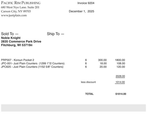 Noble Knight Invoice 9204